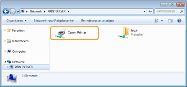 Anzeigen der freigegebenen Drucker auf dem Druckserver