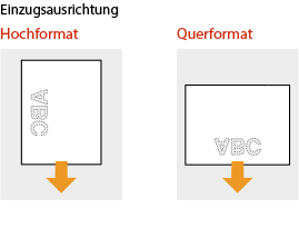 In diesem Abschnitt wird vor allem beschrieben, wie Sie bereits bedrucktes Papier mit der richtigen Seite nach oben und in der richtigen Ausrichtung einlegen. Eine Beschreibung der allgemeinen Schritte zum Einlegen von Papier in die Papierkassette oder dem Mehrzweckfach finden Sie wie folgt. |