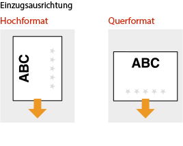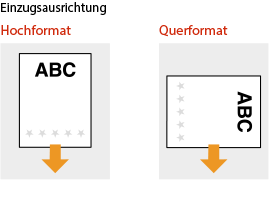 Die Einstellung <Papiereinzugsmethode>Wenn Sie auf bereits bedrucktes Papier drucken, müssen Sie bei jedem Wechsel zwischen einseitigem und doppelseitigem Druck beachten, wie herum das Papier eingelegt werden muss. Wenn <Papiereinzugsmethode> jedoch auf <Priorität Druckseite> gesetzt ist, können Sie die Richtung, in der Sie bereits bedrucktes Papier beim doppelseitigen Druck (Logo-Seite nach oben bei Papierkassette oder nach unten beim Mehrzweckfach) einlegen, auch beim einseitigen Druck verwenden. Diese Einstellung ist besonders nützlich, wenn Sie häufig zwischen ein- und doppelseitigem Druck wechseln. Papiereinzugsmethode |