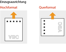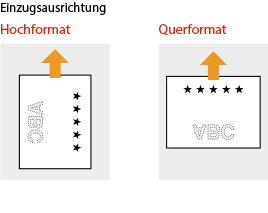 Wenn Sie Papier verwenden, das bereits mit einem Logo bedruckt wurde, achten Sie auf die Ausrichtung des Papiers, wenn Sie es einlegen. Legen Sie das Papier ordnungsgemäß ein, sodass der Druck auf der richtigen Seite des Papiers mit Logo erfolgt.
