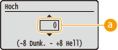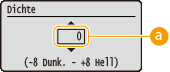 2 | Verwenden Sie / , um die Dichte einzustellen.![]() Einstellen der DichteLegen Sie einen "+" Wert fest, um die Dichte zu erhöhen. Legen Sie einen "-" Wert fest, um die Dichte zu verringern. |