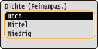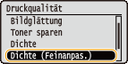 1 | Wählen Sie <Dichte (Feinanpas.)>, und drücken Sie .![]() | ||||||