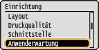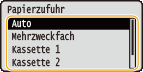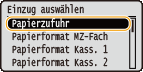 Wählen Sie die Papierzufuhr, für die Sie die Druckposition überprüfen möchten, und drücken Sie