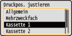 Wenn ein Dokument nicht in der Mitte oder außerhalb des bedruckbaren Bereichs gedruckt wird, passen Sie die Druckposition an. Sie können die Druckposition für jede Papierzufuhr anpassen.