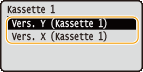<Vers. Y (doppels.)> und <Vers. X (doppels.)> um die Druckposition auf der ersten Seite (Vorderseite) anzupassen. Die Druckposition auf der zweiten Seite (Rückseite) wird auf Basis der für die jeweilige Papierzufuhr eingestellten Werte angepasst.