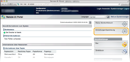Starten Sie Remote UI, und melden Sie sich im Verwaltungsmodus an.