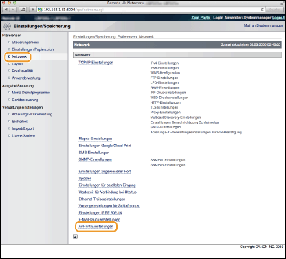 Zum Ändern der AirPrint-Einstellungen melden Sie sich im Verwaltungsmodus an.