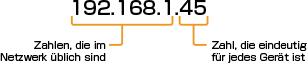 Eine IP-Adresse besteht aus vier Zahlen, abgegrenzt durch einen Punkt (.) (Beispiel: 192.168.1.45). Jede Zahl muss im Bereich von 0 bis 255 sein. Im Allgemeinen stellen Sie die ersten drei Zahlen gleich ein wie jene für den Router, da sie im Netzwerk üblich sind. Bestimmen Sie die letzte Zahl (zum Beispiel, 45 bei 192.168.1.45), die sich von der Zahl für andere Geräte unterscheidet.