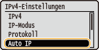 6 | Wählen Sie <Auto IP>, und drücken Sie . |