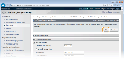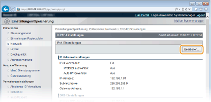 Konfigurieren von DNS bei IPv41 | Klicken Sie in [Bearbeiten] auf [IPv4-Einstellungen]. ![]() |