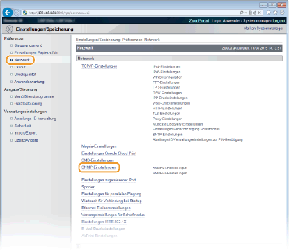 Mit SNMP können die Druckerverwaltungsinformationen wie Druckprotokolle und Druckerports regelmäßig von einem Computer im Netzwerk abgerufen und überwacht werden.