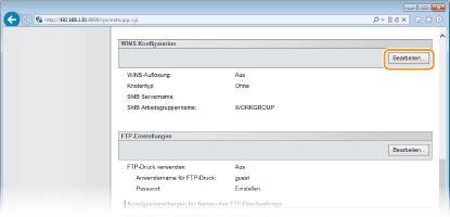 Klicken Sie in [WINS-Konfiguration] auf [Bearbeiten].