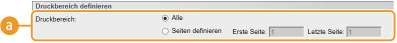 [Seiten definieren] | Wählen Sie diese Option aus, um den Druckbereich festzulegen. Diese Einstellung ist für JPEG-Dateien nicht verfügbar. |