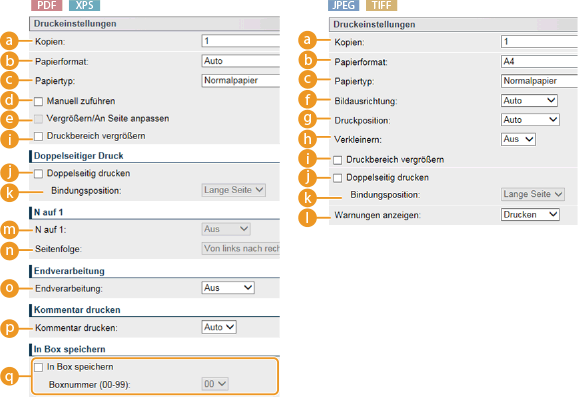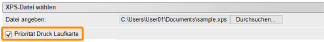 Wenn Sie die Druckeinstellungen für XPS-Dateien festlegenDeaktivieren Sie das Kontrollkästchen [Priorität Druck Laufkarte]. Wenn das Kontrollkästchen aktiviert ist, stehen einige Optionen nicht zur Verfügung. ![]() |