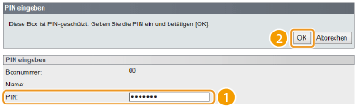 Wenn der unten dargestellte Bildschirm angezeigt wird, geben Sie die PIN ein, und klicken Sie auf [OK].