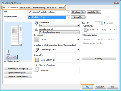 Legen Sie gegebenenfalls die Druckeinstellungen fest, und klicken Sie auf [OK].