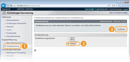 Klicken Sie auf [Gerätesteuerung], wählen Sie [Kaltstart], und klicken Sie dann auf [Ausführen].