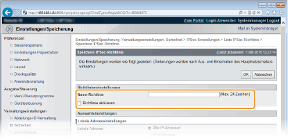 Klicken Sie auf [Speichere IPSec-Richtlinie].