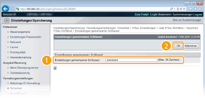 Ein Schlüssel aus alphanumerischen Zeichen kann gemeinsam mit den anderen Geräten genutzt werden. Aktivieren Sie TLS für Remote UI im Voraus (