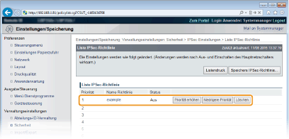 Klicken Sie auf [Löschen] rechts der Richtlinie, die Sie löschen möchten.