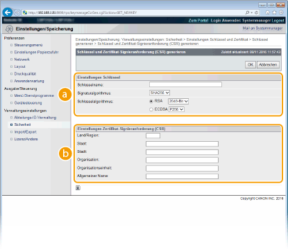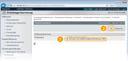 Wählen Sie [Schlüssel und Zertifikat-Signieranforderung (CSR)], und klicken Sie auf [OK].