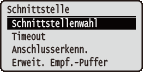 ![]() | Zu allen Einstellungen über die Schnittstellen für Kommunikationen mit einem Computer und USB ist eine kurze Erläuterung angegeben. Die Standardeinstellungen sind mit einem Kreuzzeichen ( ) markiert. |