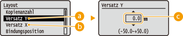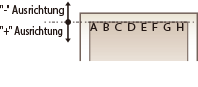 Sie können <Druckpos. justieren> unter <Anwenderwartung> auswählen, um die Druckposition für die jeweilige Papierzufuhr genau festzulegen. Der Bereich der verfügbaren Versatzwerte reicht von -5,0 mm bis +5,0 mm. Druckposition anpassen |