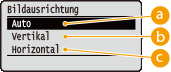 Wenn die angegebene Einstellung von (<Vertikal> oder <Horizontal>) nicht der Ausrichtung des Bildes entspricht, wird das Bild verkleinert gedruckt. |