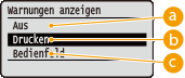 Sterne (*)Mit einem Sternchen (*) markierte Einstellungen werden je nach dem von Ihnen verwendeten Modell, Optionen oder anderen Einstellungsoptionen möglicherweise nicht angezeigt. |