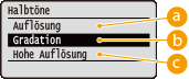 Druckt Abstufungen und Linien mit fließenden Übergängen. Dieser Druckmodus ist geeignet für das Drucken von Zeichnungen und Diagrammen mit Abstufungen.