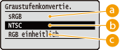 Farbdaten werden in Schwarz-Weiß-Daten konvertiert, um ein Erscheinungsbild äquivalent zu Fernsehbildern (NTSC) zu erzeugen.