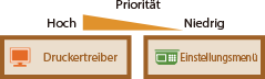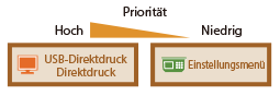 Priorität der EinstellungenDie im Druckertreiber vorgenommenen Einstellungen haben Vorrang vor den am Bedienfeld vorgenommenen Einstellungen. | | Wenn Sie USB-Direktdruck oder Direktdruck ausführen, haben die in den TIFF-Daten gespeicherten oder für das Drucken vorgesehenen Einstellungen Vorrang vor den im Bedienfeld vorgenommenen Einstellungen. | |