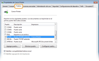 En la pestaña [Puertos], asegúrese de que la casilla de verificación [Habilitar compatibilidad bidireccional] esté marcada.