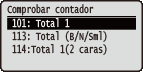 <101: Total 1>, <113: Total (B/N/Sml)>, o <114:Total 1(2 caras)>