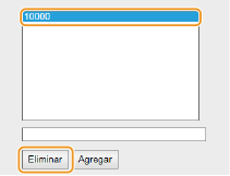 2 | Especifique las direcciones excluidas. Introduzca la dirección IP (o el rango de direcciones IP) en [Guardar direcciones] y haga clic en [Agregar]. Comprobación de los errores de entrada Si las direcciones IP se introducen de forma incorrecta, es posible que no pueda acceder al equipo desde la IU remota, en cuyo caso deberá establecer <Filtro de direcci.> en <Desactivado>. Filtro de direcci.Cuando haya seleccionado [Rechazar] en [Directiva prefijada] Los paquetes de bucle invertido, difusión y multidifusión no pueden filtrarse. Eliminación de una dirección IP de las excepciones Seleccione una dirección IP y haga clic en [Eliminar]. |