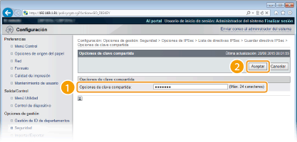 Introduzca caracteres alfanuméricos para la clave precompartida y haga clic en [Aceptar].