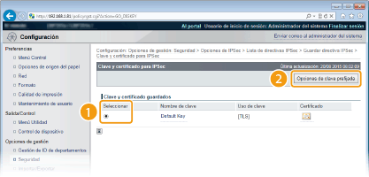 Es posible compartir claves de caracteres alfanuméricos con los demás dispositivos. Habilite antes TLS para la IU remota (Utilizar TLS para comunicaciones cifradas).