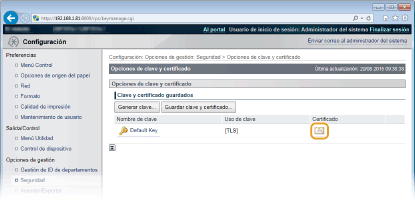 Haga clic en [Opciones de clave y certificado] para verificar un par de claves o en [Opciones de certificado de CA] para verificar un certificado de CA.