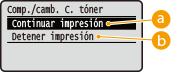 Especifique durante cuánto tiempo, en segundos, tiene que aparecer un mensaje cuando se modifique una opción. Si selecciona <Desactivado>, el mensaje no aparecerá. | ![]() |