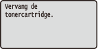 Als het bericht <Gebruiksduur tonercartridge bijna bereikt.> verschijnt, wordt het afdrukken tijdelijk stopgezet. Om het afdrukken voort te zetten, drukt u op  (  ). Welk bericht verschijnt, is afhankelijk van de instelling <Actie na waarsch.> in het instellingenmenu van het bedieningspaneel. Actie na waarsch.U kunt een waarde instellen als percentage van de hoeveelheid die over is in de tonercartridge en die dit bericht op het scherm brengt. Contr.tijd spec. tnr |