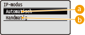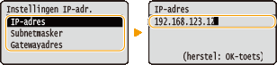 Selecteer <Instellingen IP-adr.>, en druk op .