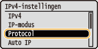 Selecteer <TCP/IP-instellingen>  <IPv4-instellingen>  <IP-modus>.
