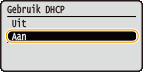 Als u het apparaat uit- en weer inschakelt, wordt een ander IP-adres dan het huidige toegewezen. Dit kan het afdrukken deactiveren. Om DHCP te gebruiken, geeft u één van de volgende instellingen op nadat u de netwerkbeheerder hebt geraadpleegd.