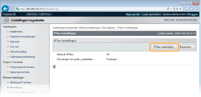 Klik op [Beveiliging]  [IPSec-instellingen].