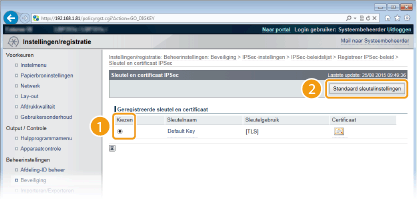 Selecteer het sleutelpaar dat u wilt gebruiken en klik op [Standaard sleutelinstellingen].