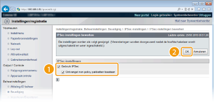 Schakel het selectievakje [Gebruik IPSec] in en klik op [OK].