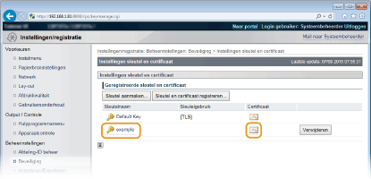 Klik op [Sleutelnaam] of [Certificaat] zodat het certificaat wordt geregistreerd.