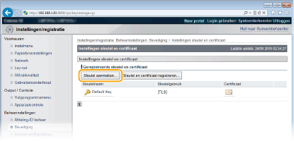 U kunt een sleutelpaar niet verwijderen als dit momenteel in gebruik is, bijvoorbeeld wanneer 'TLS' of 'IEEE 802.1X' wordt weergegeven onder [Sleutelgebruik]. In dat geval moet u de functie uitschakelen of het sleutelpaar vervangen voordat u het sleutelpaar kunt verwijderen.