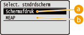 ![]() | De instel-items voor het hoofdscherm over MEAP worden in een lijst geplaatst en kort toegelicht. Standaardinstellingen worden aangegeven met een dolksymbool ( ). |