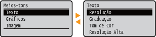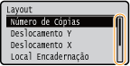 para percorrer o ecrã para cima ou para baixo. As cores do texto e do fundo de um item são invertidas quando o item é selecionado.
